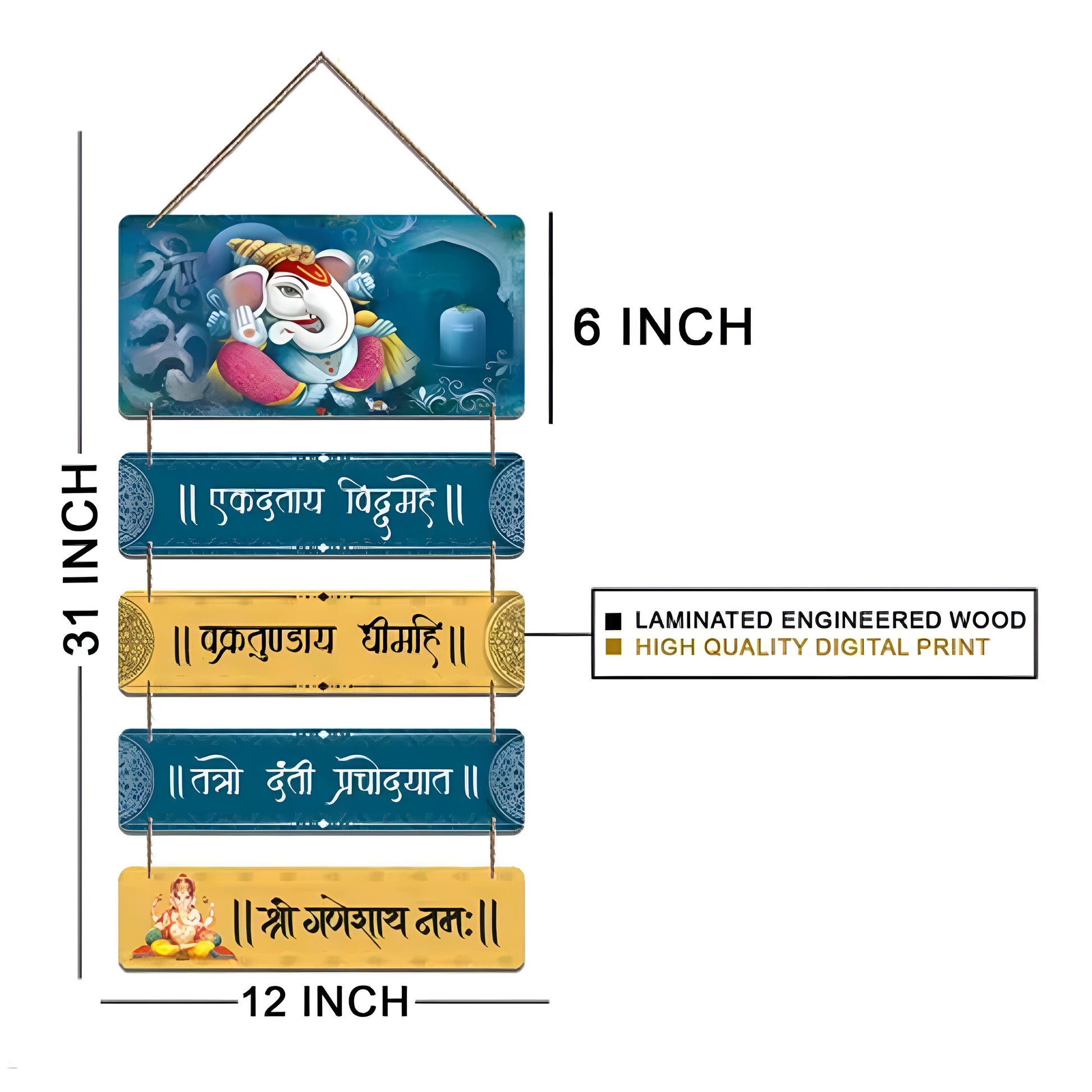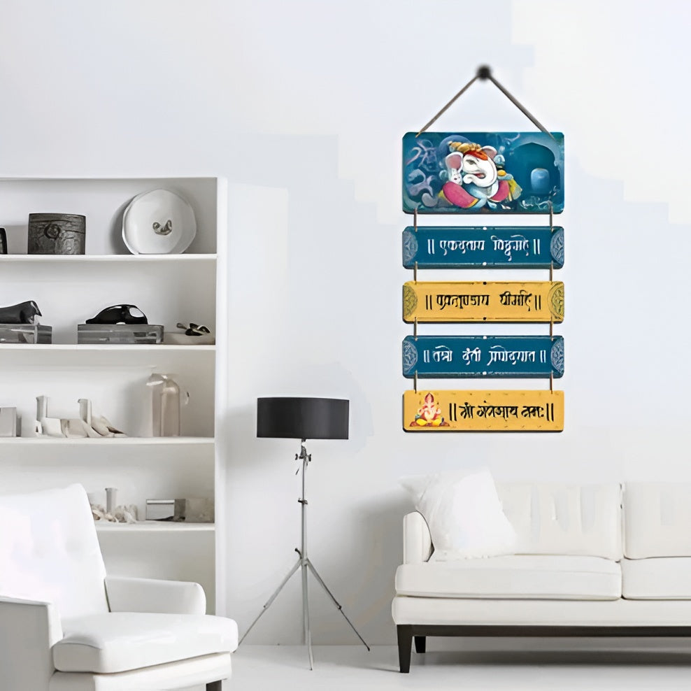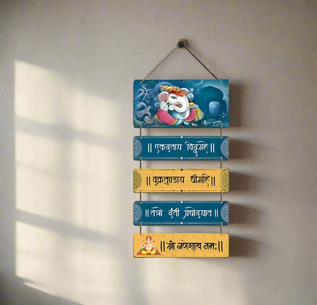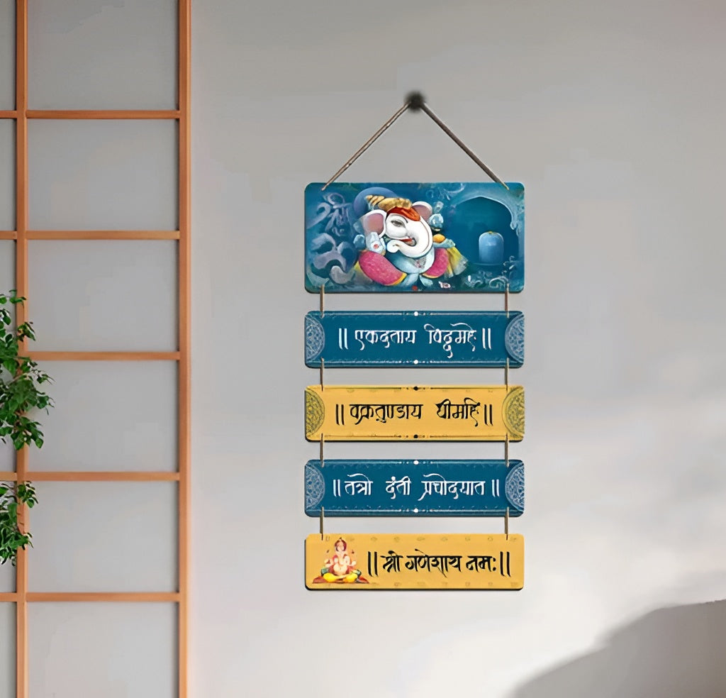 Lord Ganesha Gayatri Mantra Wooden Wall Hanging | Auspicious Home Decor for Puja Room Entrance